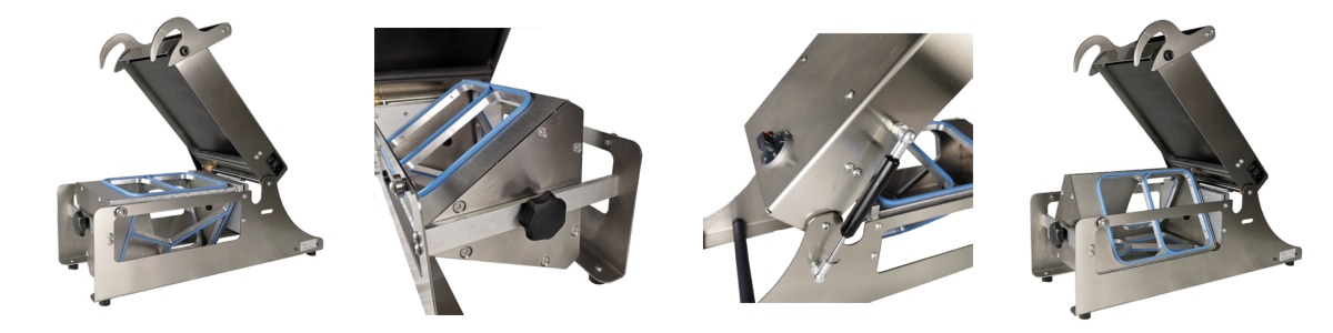 The table tray sealer TF offers the possibility of integrating 3 different sealing frames directly into the machine, which can then be easily adjusted to the desired sealing frame using a rotary system.