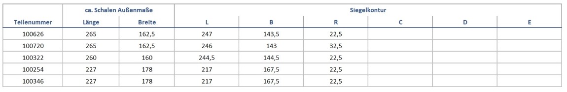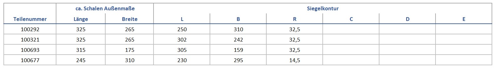 When selecting the frame, please always ensure that the dimensions of the seal contour are approximately in the middle of the seal edge of the bowls.
